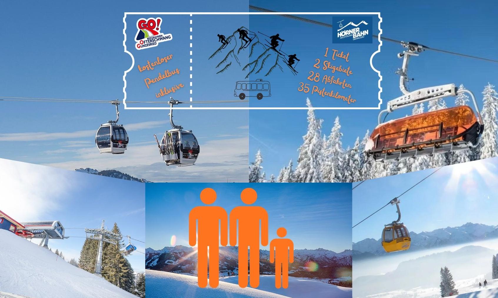 With just one ticket, you can make the most of your perfect day of skiing. There are two ski areas available with a total of 35 kilometers of varied slopes for young and old. When snow conditions are optimal, you can enjoy 28 runs of the finest skiing and the option of traveling between the Hörnerbahn and the Ofterschwang-Gunzesried mountain railway as you wish with the free shuttle bus. A total of up to 13 lifts are available (depending on actual snow conditions).